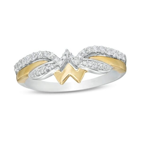 This dynamic choice is crafted in sterling silver and 10K gold with a diamond-studded silver accent and a polished gold ribbon. With 1/5 carat diamonds and a brilliant polished sheen, this design is mesmerizing and will complement most outfits. Sterling silver rings cannot be resized after purchase.