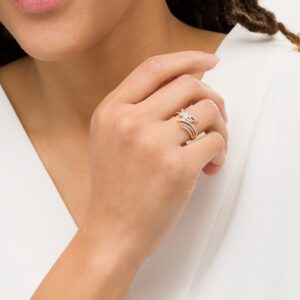 A gorgeous symbol of your love, this sparkling bridal set from features an engagement ring with a romantic heart-shaped diamond haloed by glimmering round diamonds. The band and matching wedding ring are adorned with twists of round diamonds, bringing the total weight of the set to 7/8 carat. The ring is styled in 14K white gold.